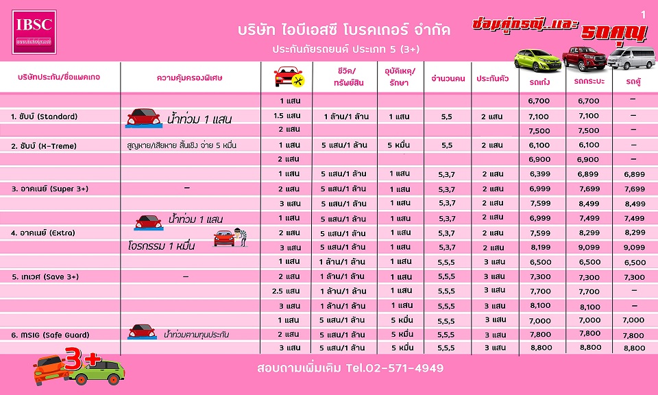 ประกันภัยรถยนต์ : ประเภท 5 (3+) บริการ 24 ชั่วโมง คุ้มครองทันที ส่งตรงถึงบ้าน ฟรี!